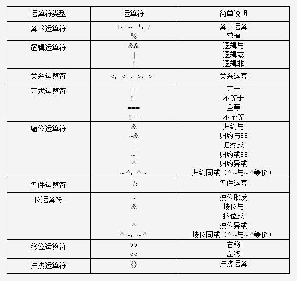 Verilog语言参考了C语言中大多数算符的语义和句法,提供了功能丰富的运算符。按功能不同可分为算术运算符、逻辑运算符、关系运算符、等式运算符、缩位运算符(又称归约运算符)、条件运算符、位运算符、移位运算符和拼接运算符9类。表7.1给出了Verilog HDL中定义的运算符分类及简单功能说明。